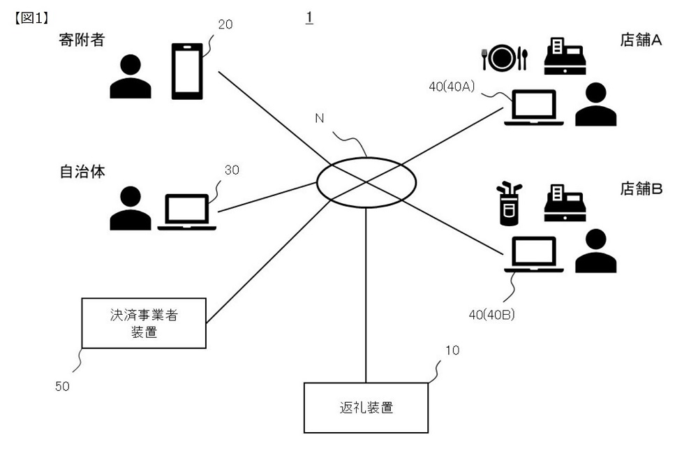 福岡県久留米市に本社をおく株式会社サンカクキカクが「店舗型ふるさと納税※『ふるさとズ』」のビジネスモデル特許(特許第7282417号)を取得したことが新聞等で話題になりました。このサービスを利用すると、当該店舗の属する自治体へ寄附を行うことができ、また、「ふるさと納税」の返礼品をその場で受け取ることができます。本発明について簡単に解説します。